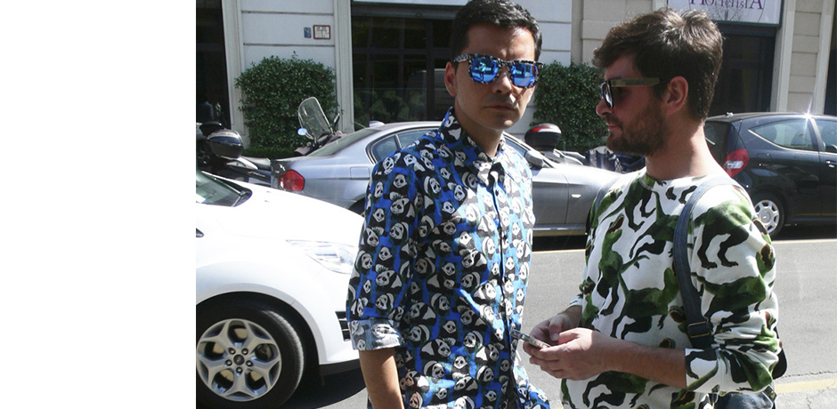 Дизайнерский дуэт очень популярной итальянской марки Au jour le jour - любимцев Chiara Ferragni и Viviana Volpicella - составляют мастера стильных силуэтов и веселых принтов Diego Marquez и Mirko Fontanta.